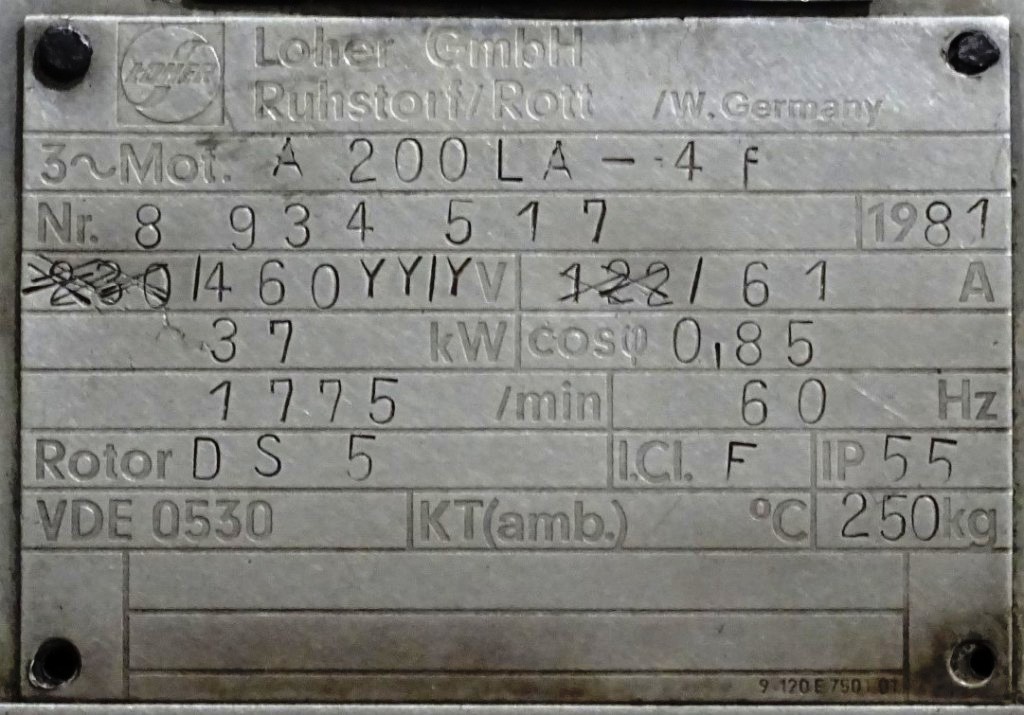 Max bowl speed 4500 RPM, rated @ 25,000 LPH separation. 37 KW motor 460/3/60/1775 RPM, counter pressure valve on inlet, manometer, manual flow regulation valve and flow indicator for cream, sludge tank, base plate, intel/outlet pipes, tools and spare parts. 1981 vintage. Excellent condition. Located in Europe.