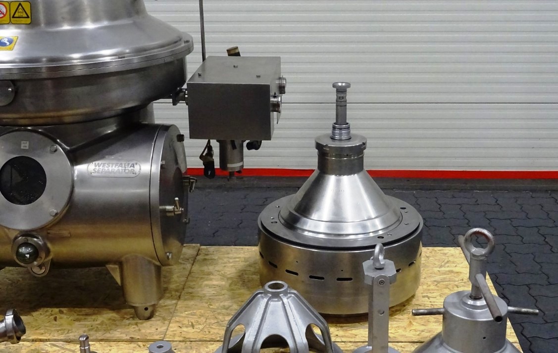 In addition to its impressive performance specifications, the Westfalia MSD 130-01-076 warm milk separator is designed with user convenience in mind. The unit comes equipped with flow indicators and sample valves, allowing operators to monitor and adjust processes in real-time for optimal results. The base plate with feet ensures stability during operation, while the included tools and manual provide everything needed for installation and maintenance. This separator, vintage 1996, has been maintained in very good condition, making it a reliable choice for businesses looking to invest in high-quality dairy processing equipment. Its stainless steel construction not only guarantees durability and resistance to corrosion but also ensures compliance with hygiene standards, which is crucial in the dairy industry.