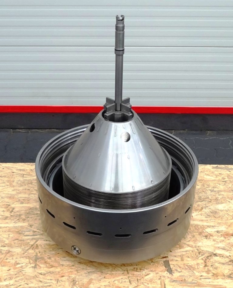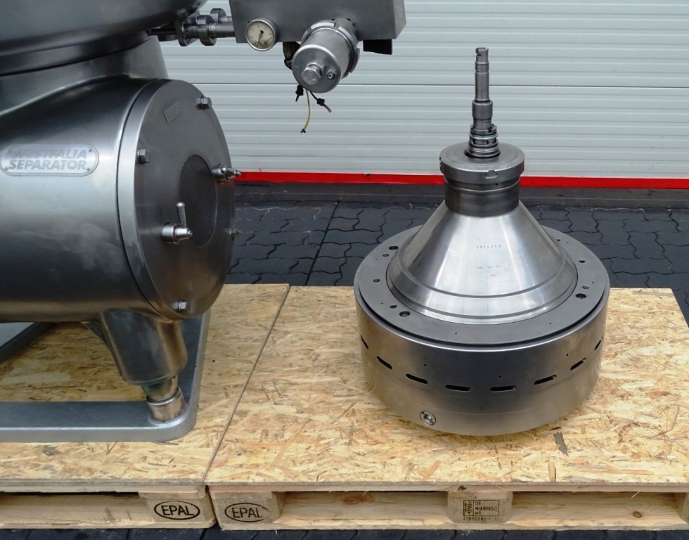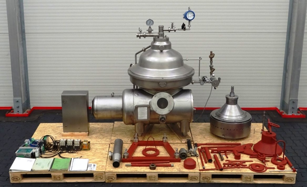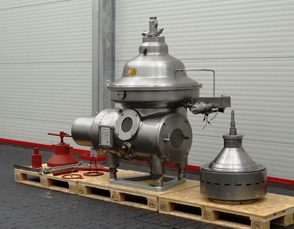 Max bowl speed 5920 RPM, rated @ 15,000 LPH. Special design with hermetic cream outlet (no pump) for cold skimming, therefore the cream is discharged without damaging the fat globules, even at low temperatures. 26 KW motor 380/3/60/1750 RPM, water valves, constant pressure valve 3 bar, monometer on outlet, base frame and tools. 1992 vintage. Excellent condition. Located in Europe.