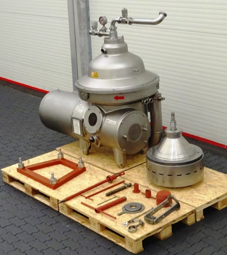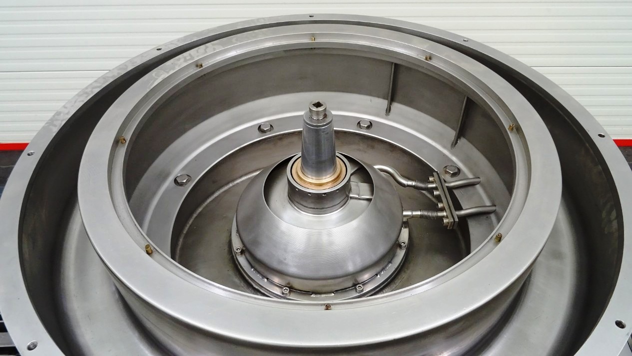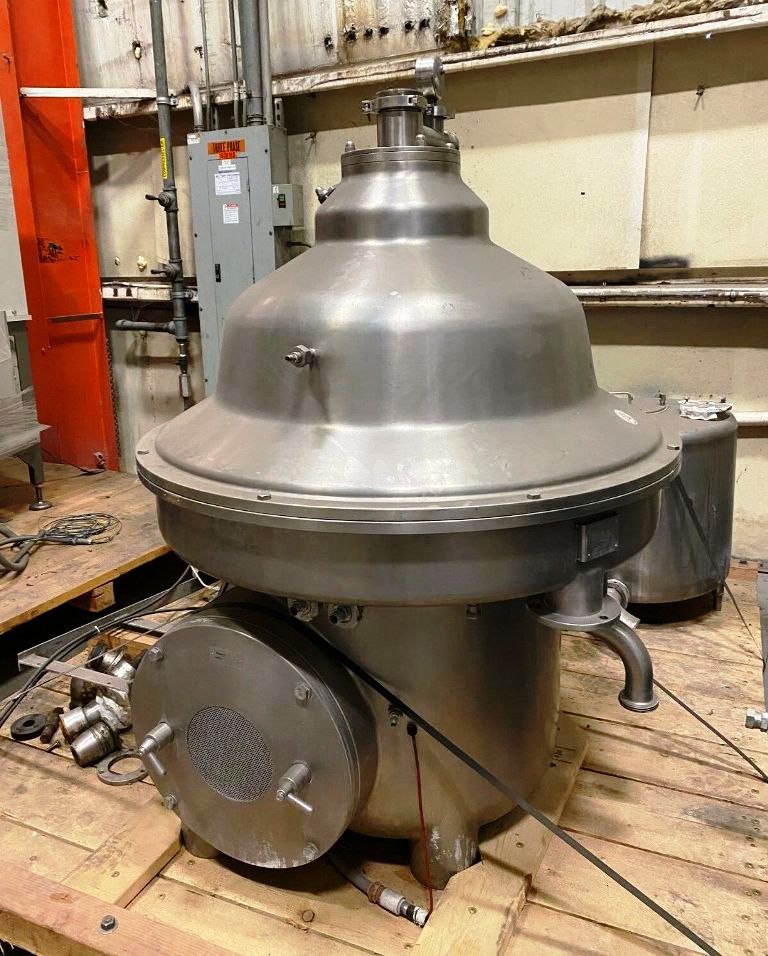 Max bowl speed 5920 RPM, rated @ 30,000 LPH, 68,000 PPH. 36 KW motor 230/3/60/1775 RPM with cover, base plate and tools. No controls. 1999 vintage. Very good condition. Located in Europe.