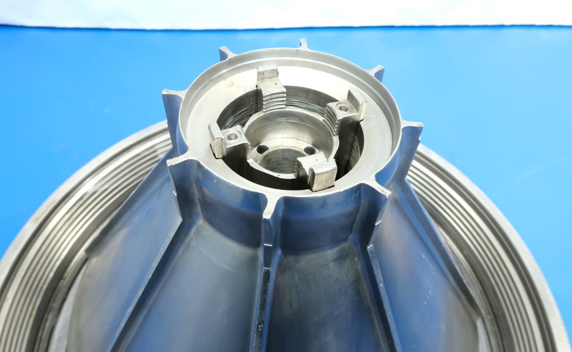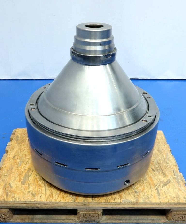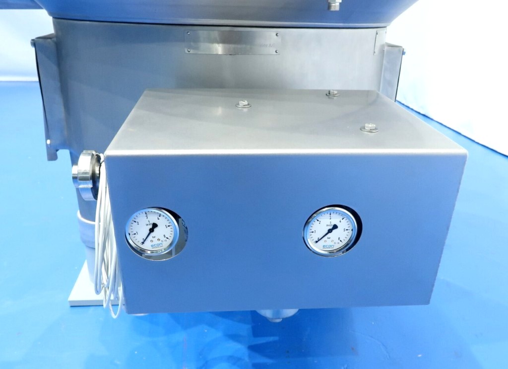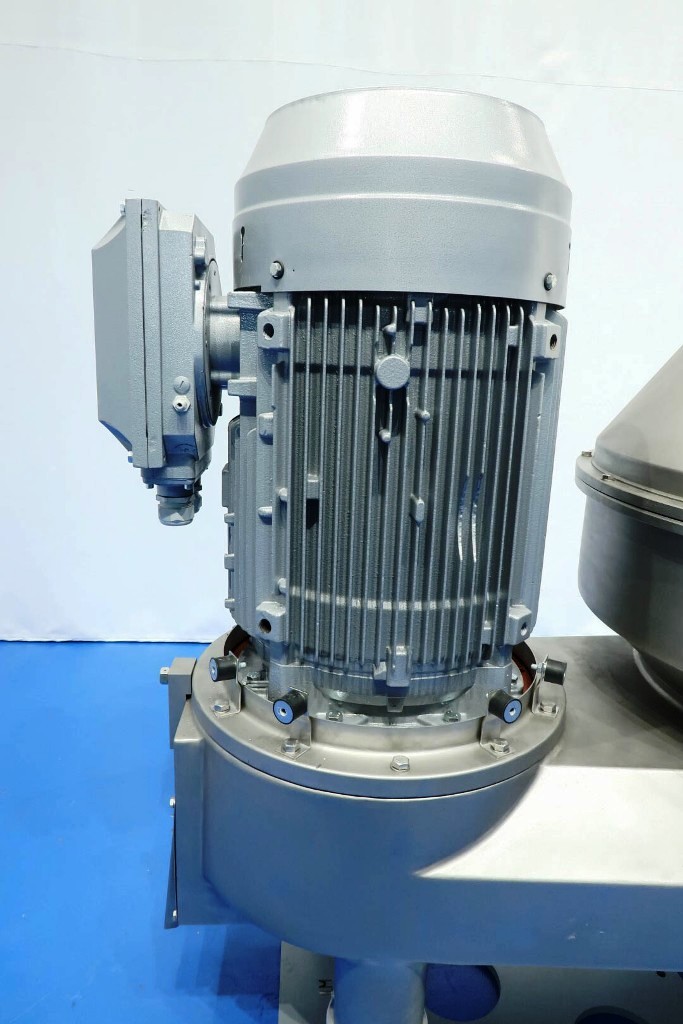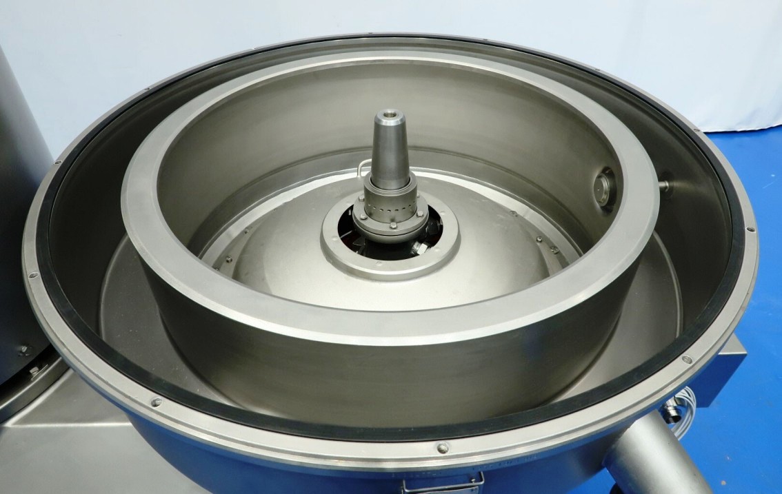 The Westfalia MSE 500-01-177 warm milk/whey skimmer, 316SS. is designed for high efficiency in the dairy processing industry, particularly for the separation of cream from milk and whey. With a maximum bowl speed of 4800 RPM, this skimmer is capable of handling a remarkable throughput of 113,500 PPH or 50,000 LPH, making it an ideal solution for medium to large-scale operations. The solids space of 21 liters allows for effective separation while maintaining optimal flow rates. The unit operates at a feed pressure of 6 bar, ensuring that the milk and cream are discharged under pressure via reliable centripetal pumps, which enhances the efficiency of the skimming process. The hydro-hermetically sealed feed and discharge systems minimize the risk of contamination, ensuring that the final product meets the highest quality standards.