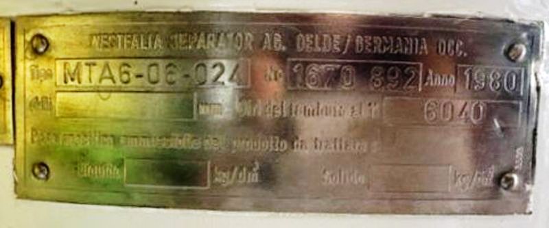 Max bowl speed 6040 RPM, rated @ 2000 LPH, 3.5 KW motor 380/3/50/1450 RPM with tools and manual. 1980 vintage. Reconditioned. Located in Europe.