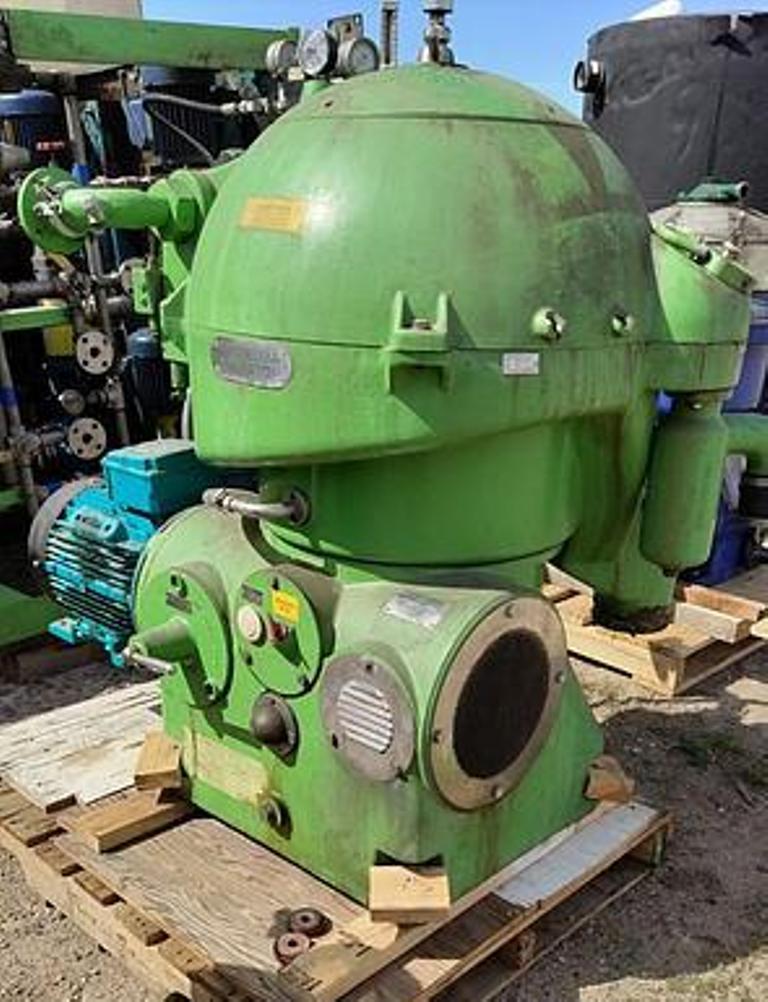 Max bowl speed 6540 RPM, 10,800 x G, rated @ 50 GPM, oil discharged under pressure, 20 HP motor 230/460/3/60/1755 RPM. 1994 vintage. Very good condition.