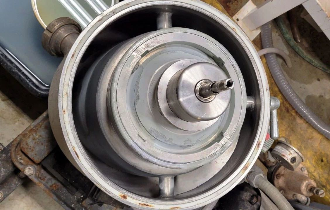 The Westfalia SA 1-02-175 pilot plant separator, 316SS. is engineered for high-performance separation processes, making it an ideal choice for pilot plants and small-scale production environments. With a maximum bowl speed of 9470 RPM, this separator efficiently handles a rated capacity of 100 gallons per hour (GPH). The design allows for the effective discharge of light liquid phases under pressure, ensuring optimal separation and minimal downtime. The unit is powered by a robust 2 HP motor operating at 230 volts, 3-phase, 60 Hz, and 1750 RPM, providing the necessary torque and reliability for continuous operation in demanding industrial settings. The inclusion of a control panel enhances user experience by allowing for precise monitoring and adjustments during operation, which is critical for maintaining consistent product quality.