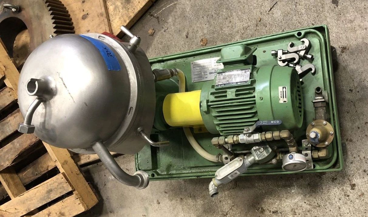The Westfalia SA 1-02-175 pilot plant separator, 316SS. is engineered for high-performance liquid separation in various industrial applications. With a maximum bowl speed of 9470 RPM, this separator is capable of efficiently processing up to 100 gallons per hour (GPH), making it an ideal choice for pilot plant operations that require rapid and reliable separation of liquids. The separator features a robust 1.5 HP motor that operates at 230/460 volts, 3-phase, and 60 Hz, ensuring consistent performance even in demanding environments. The motor's 1750 RPM rating contributes to the separator's ability to achieve high centrifugal forces, which are essential for effective separation of light liquid phases under pressure. This design not only enhances efficiency but also minimizes downtime, allowing for continuous operation in your pilot plant processes.