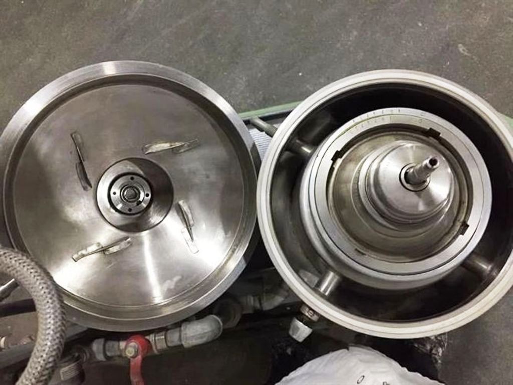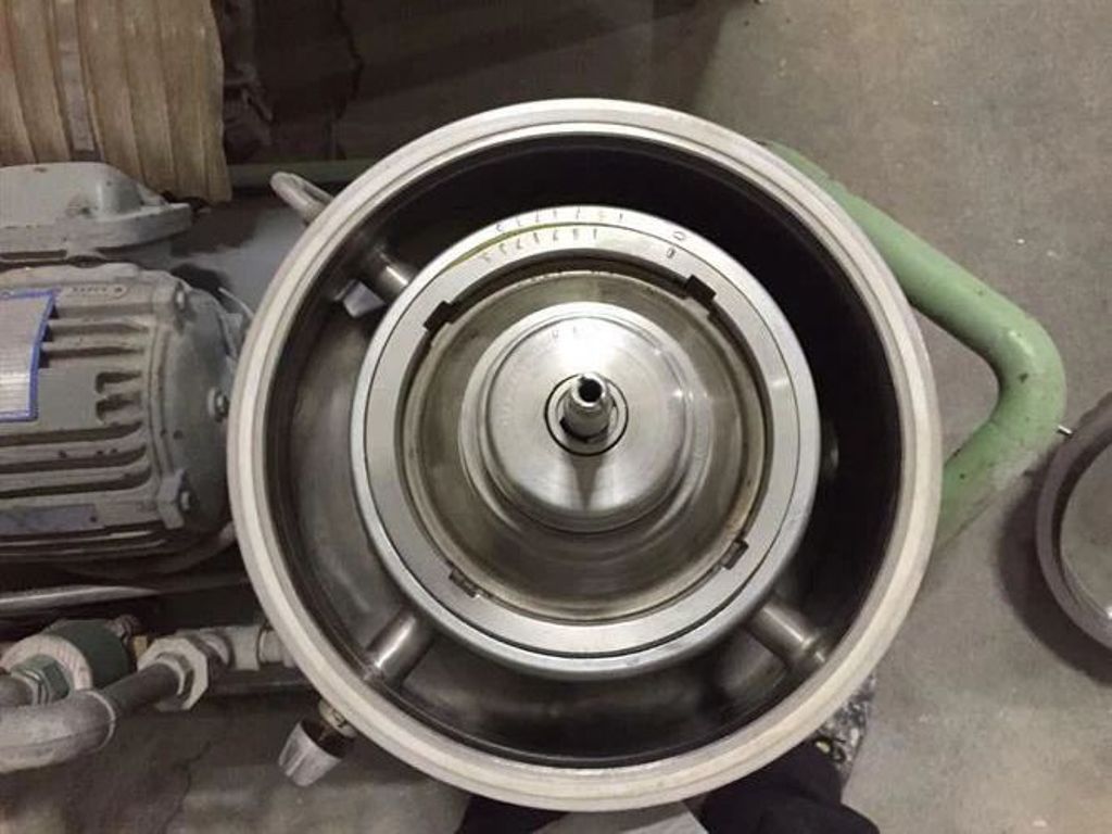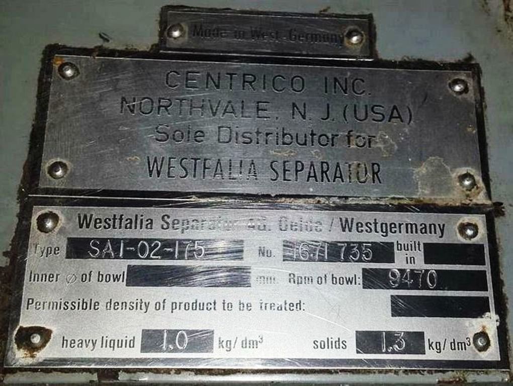 The Westfalia SA 1-02-175 pilot plant separator, 316SS. is engineered for efficient separation processes in various industrial applications. With a maximum bowl speed of 9470 RPM, this separator is capable of handling a rated throughput of 100 gallons per hour (GPH), making it an ideal choice for pilot plant operations that require reliable and consistent performance. The separator is designed to discharge light liquid phases under pressure, ensuring that the separation process is not only effective but also efficient, minimizing downtime and maximizing productivity.