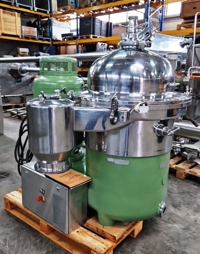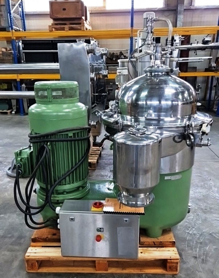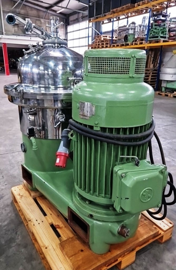 Max bowl speed 4500 RPM, rated @ 10,000 LPH on wine or juice, 16L solids volume. 22 KW motor 380/3/50/2920 RPM, sludge cyclone, flow meter, base frame, tools, manual and starter panel. Reconditioned to "as new." Located in Europe.