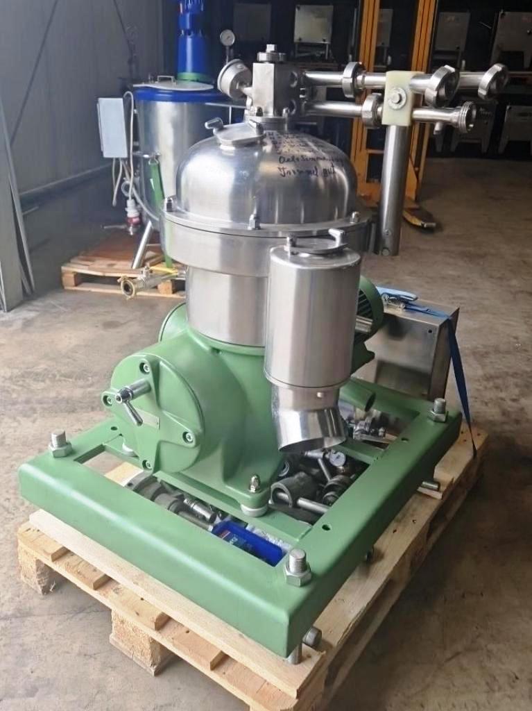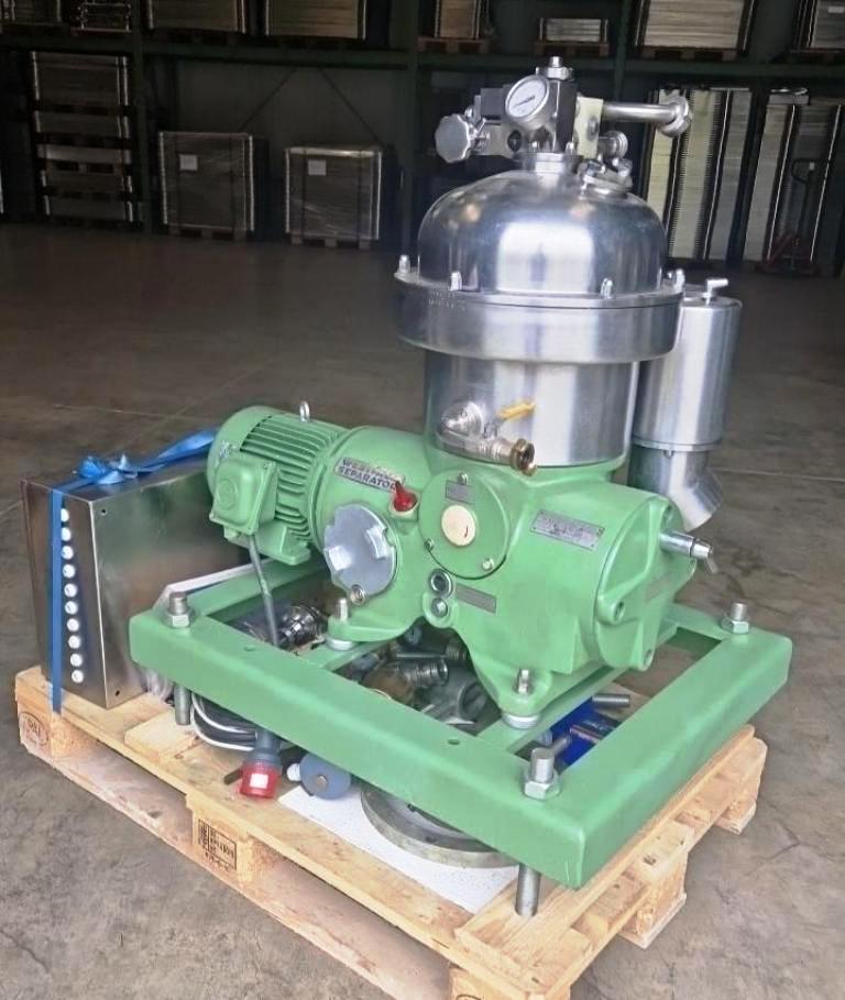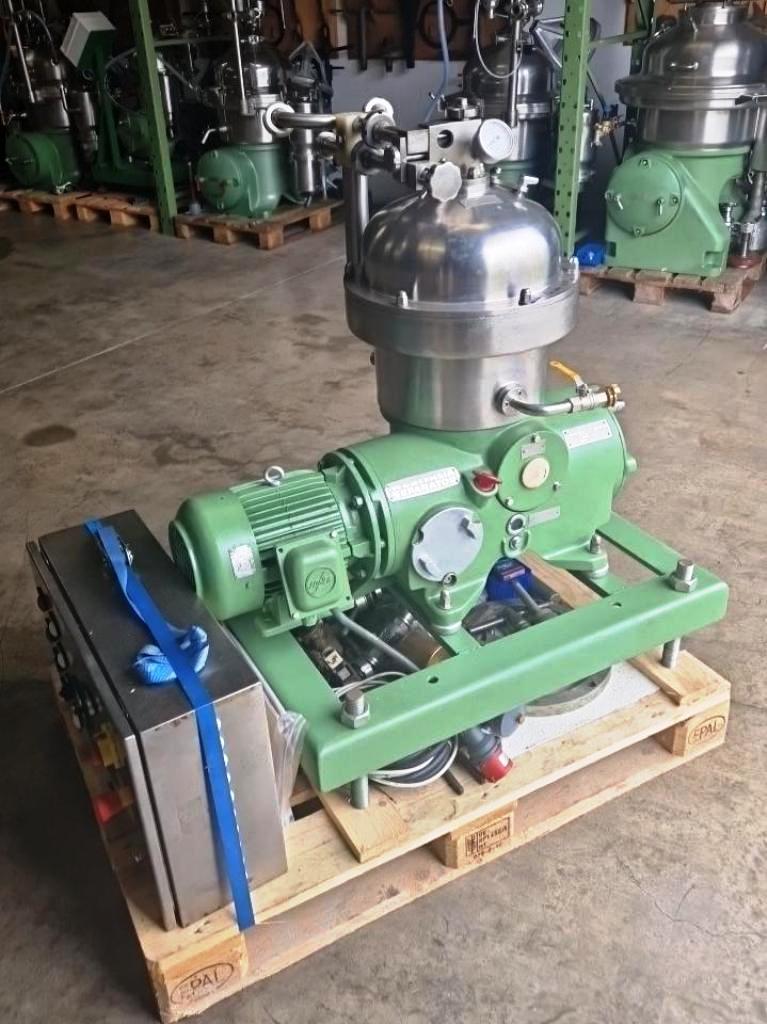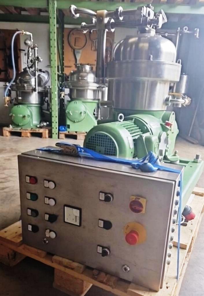 Max bowl speed 8500 RPM, rated @ 2000 LPH, 4 KW motor 380/3/50/1450 RPM, sludge cyclone, flow meter, water harness, tools, manual and control panel, mounted on a skid. Reconditioned to "as new." Located in Europe.