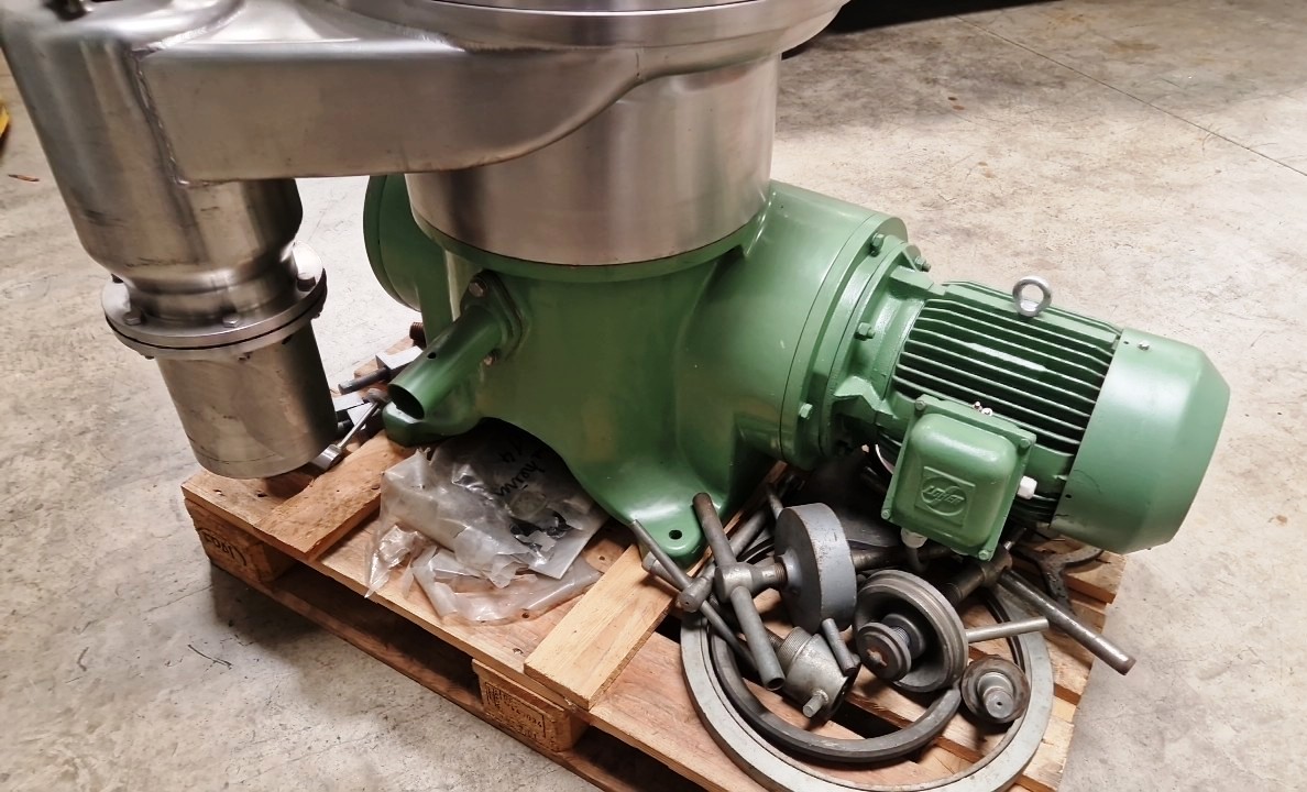 Max bowl speed 7570 RPM, 11,600 x G, rated @ 4000 LPH, self-thinker design. 7.5 KW motor 380/3/50/1450 RPM, sludge cyclone, flow meter, water harness, tools, control panel and manual. Reconditioned to "as new" with one year full mechanical warranty. Located in Europe. Can be mounted on a portable skid: add $5000.