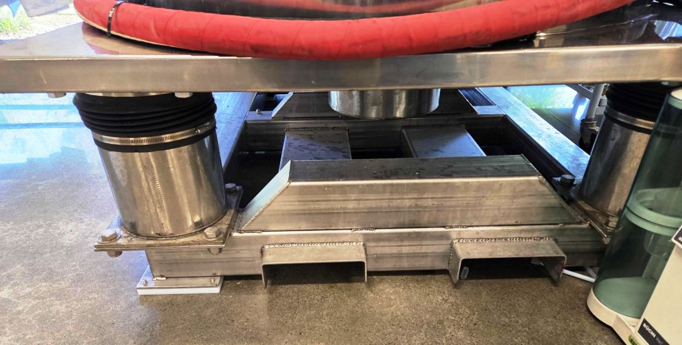 In addition to its impressive technical specifications, the ZCP PPTD-135 features a vapor-tight, pneumatic flip-top design that enhances operational safety and ease of use. The integrated control panel allows for precise monitoring and adjustments during the extraction process, while sight glasses provide real-time visibility of the material being processed. The tri-clamp feed port and drain facilitate quick and efficient loading and unloading of materials, minimizing downtime between runs. With a maximum load capacity of 135 kg and operating temperatures ranging from -40°C to 80°C, this centrifuge is versatile enough to handle a wide range of extraction scenarios. The inclusion of vibration isolators and a brake system further enhances stability and performance, ensuring that the centrifuge operates smoothly even under heavy loads.