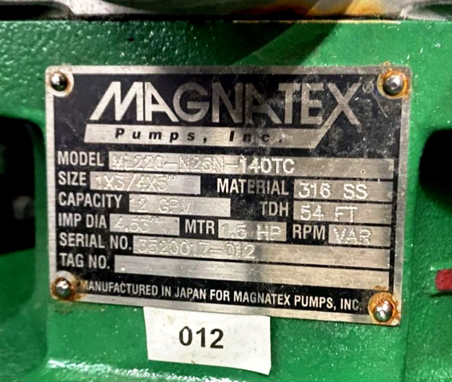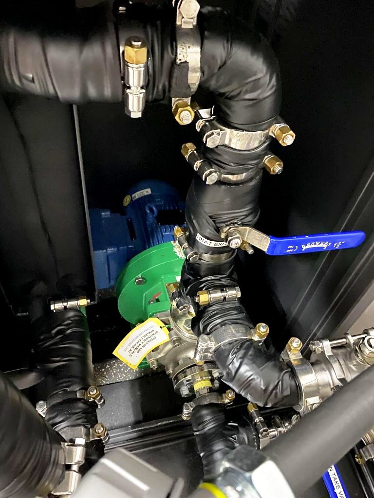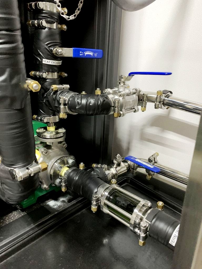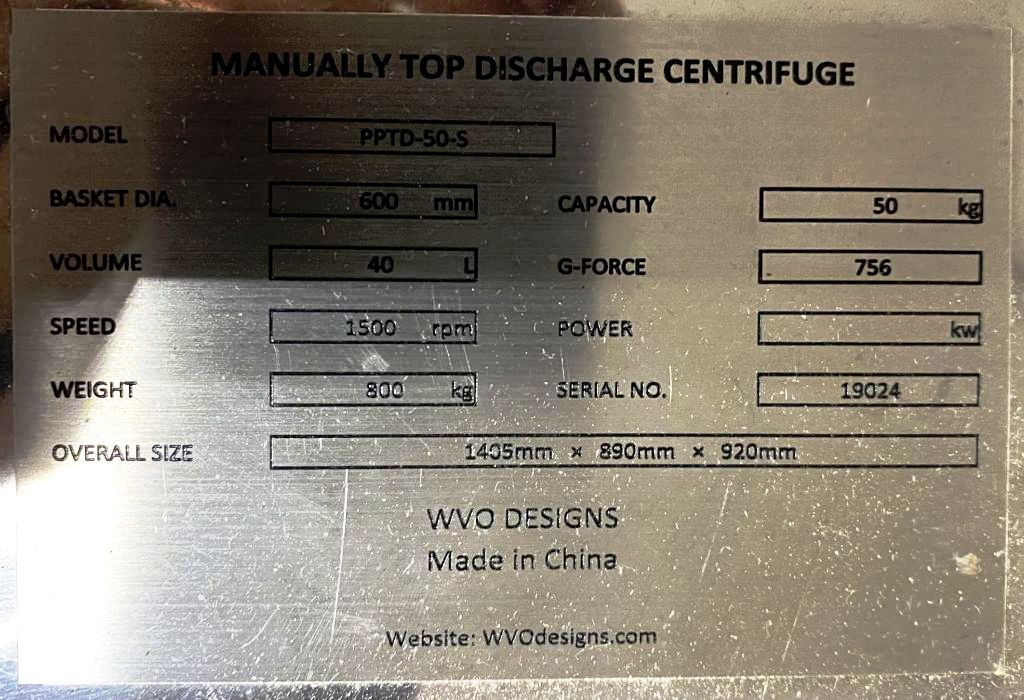 Max bowl speed 1800 RPM, 1086 x G, 24 x 12" perforate removable basket, vaportight, pneumatic flip-top design, volume 60 G, biomass washed per run: 35 lbs, alcohol usage per run: 55 G, 97% alcohol removal, 98% botanical compound removal, 2 HP XP motor 240/1/60 with L6-30 plug, tri-clamp feed port and drain, pressure gauge, brake, HMI and starter panel with VFD, unitized on a portable skid. Average cycle run 15-20 minutes. Includes Permacool ethanol chiller rated @ 30G from 20C to -40C in 30 minutes, with tanks and condensers. Excellent condition.