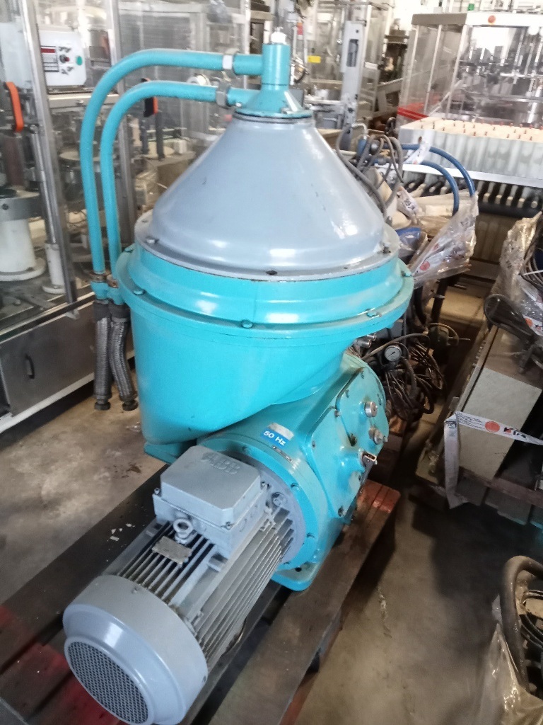 Max bowl speed 5175 RPM, liquid phase discharged under pressure, self-triggered ejection of solids via dosing ring, 15 KW motor 380/3/50/1500 RPM with tools. No control panel. 1999 vintage. Excellent condition. Located in Europe.