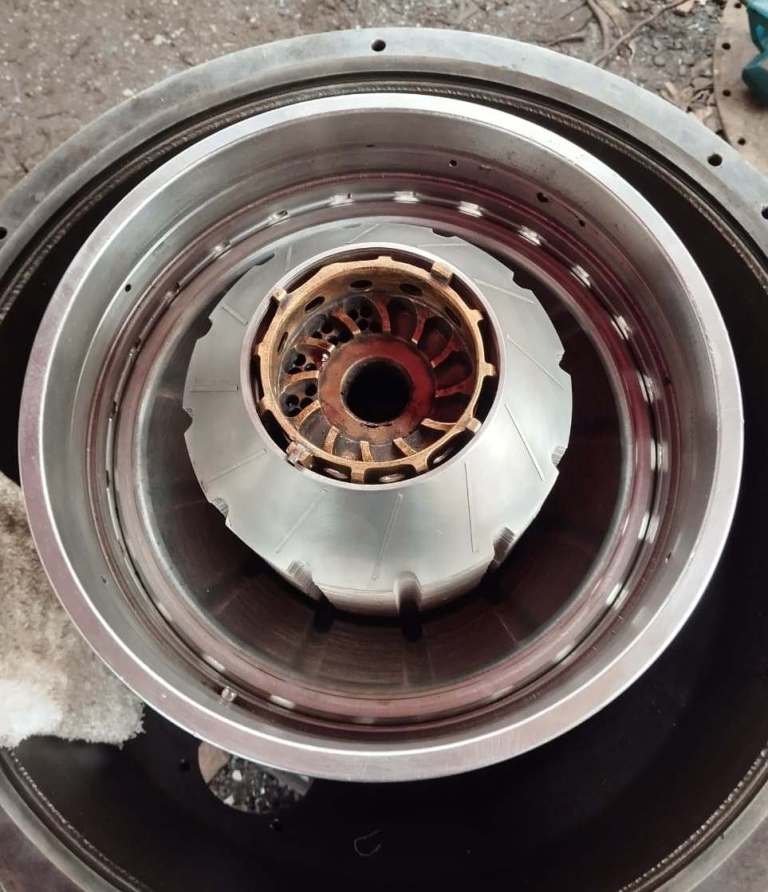 Max bowl speed 9220 RPM, both liquid phases discharged under pressure, rated @ 3500 LPH on light viscosity oil (380 cSt @ 50C). 9.5 KW motor 380/440/3/50/60/2840/3410 RPM. No tools or controls. 2002 vintage. Very good condition. Located in Bangladesh.