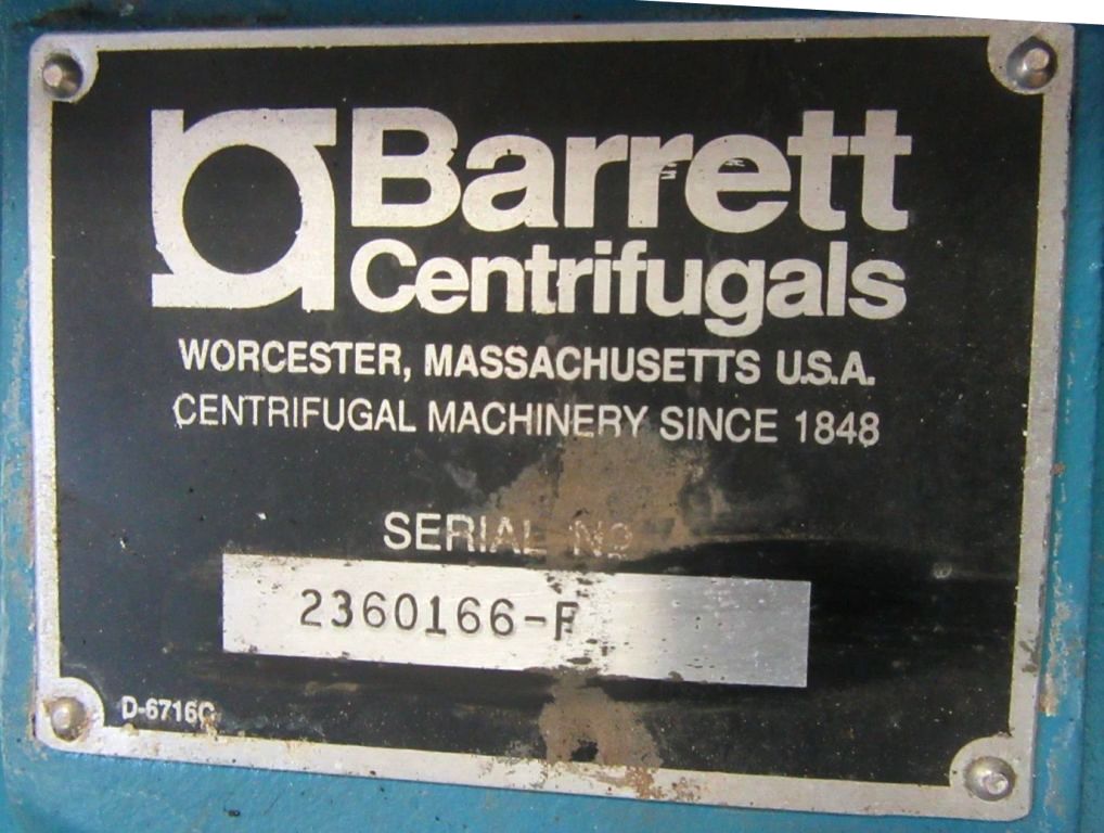 Barrett 236 Clarifuge centrifuge, SS.