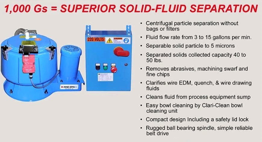 Max bowl speed 3450 RPM, 2200 x G, rated @ 2-5 GPM, 2 gal sludge cap, 13 x 6" bowl, 3 HP motor 230/460/3/60/3450 RPM, control panel and feed pump mounted on fluids storage tank. Very good condition.