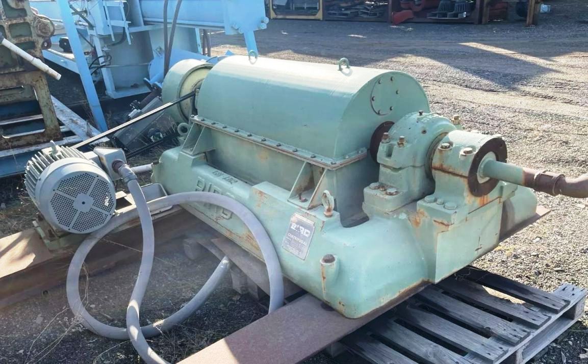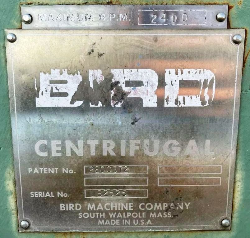 Max bowl speed 2400 RPM, 9 degree beach, 3" double lead hardsurfaced conveyor, 30 HP motor 230/460/3/60/1755 RPM, SA-69 80:1 gearbox with TA assembly and feed tube. Very good condition.