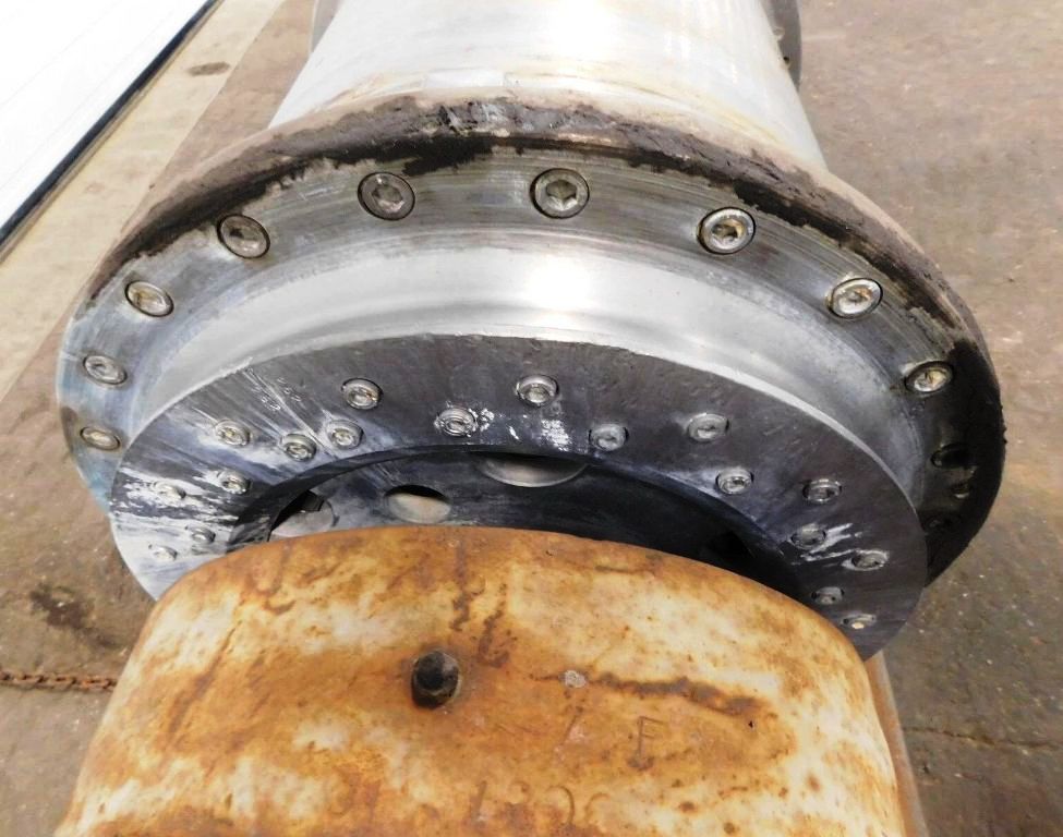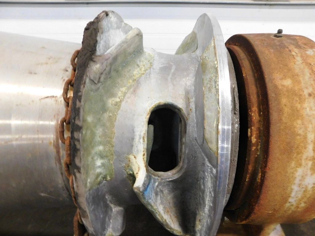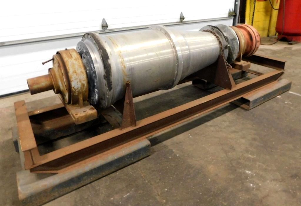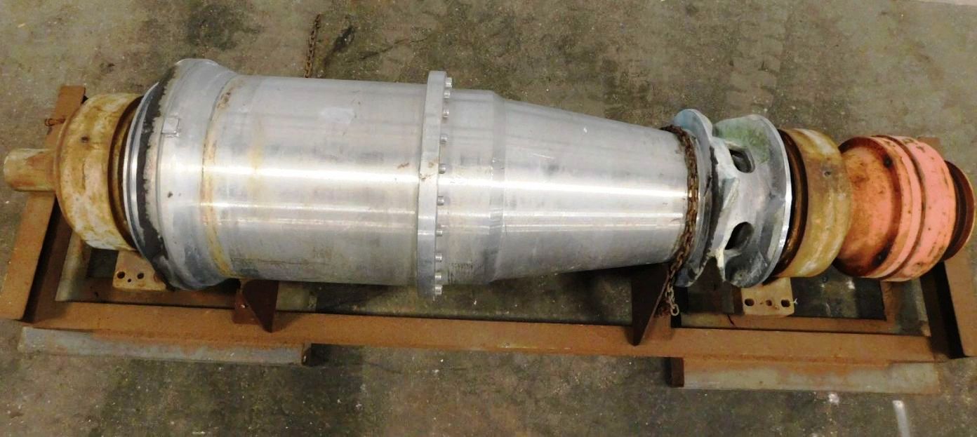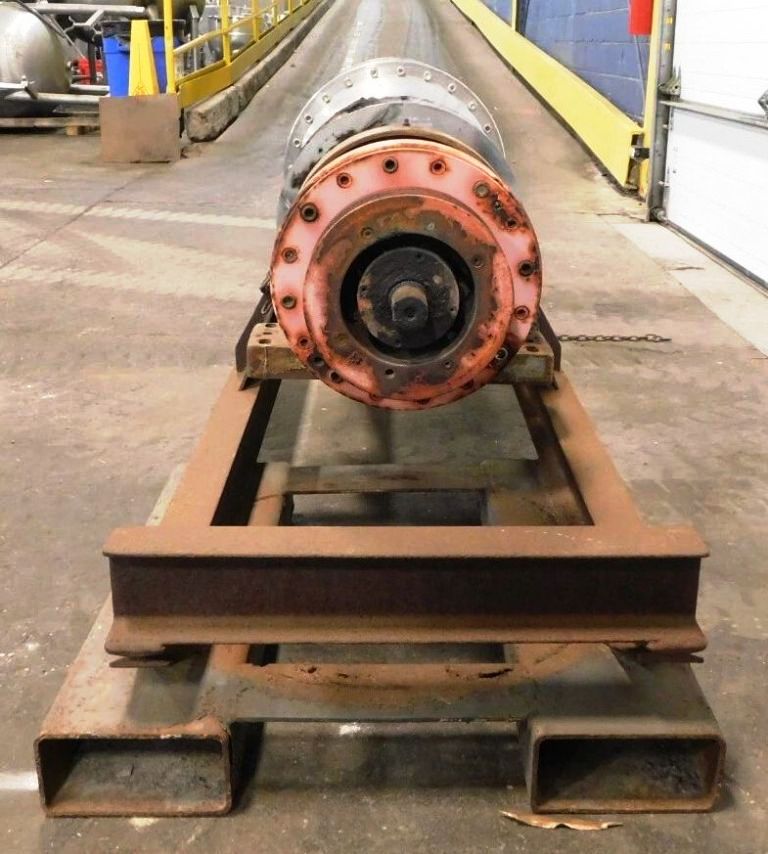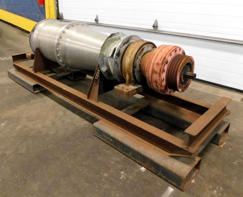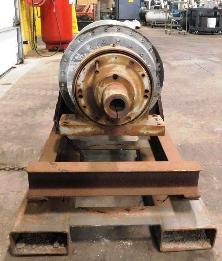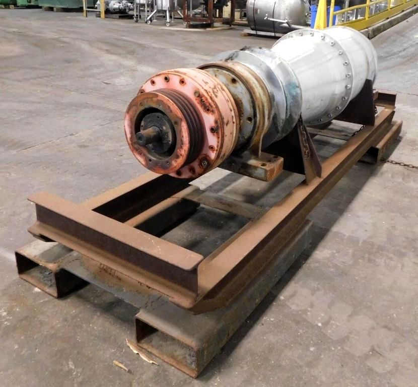 Max bowl speed 3600 RPM, 3037 x G, 5" double lead TC hardsurfaced conveyor, pillow blocks, 35:1 cyclo gearbox and sheave, mounted on a skid. Very good condition.