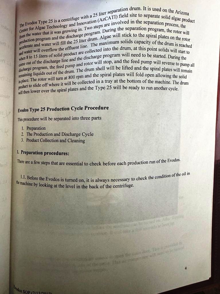 Designed for algae harvesting. Separation occurs @ 3000 x G. 250 to 4000 LPH capacity. Up to 15 L compressed solids per discharge (4 per hour). 10 KW motor 380/460/3/50/60 and Siemens PLC control panel. Excellent condition.