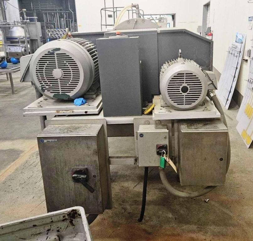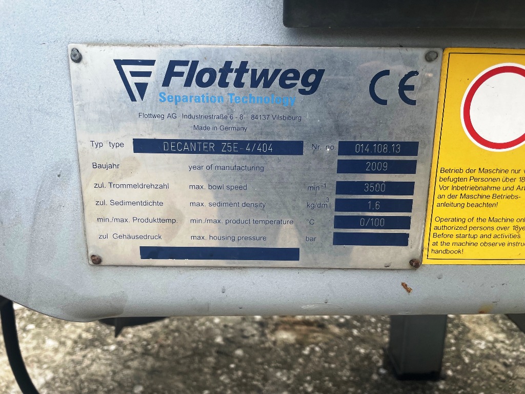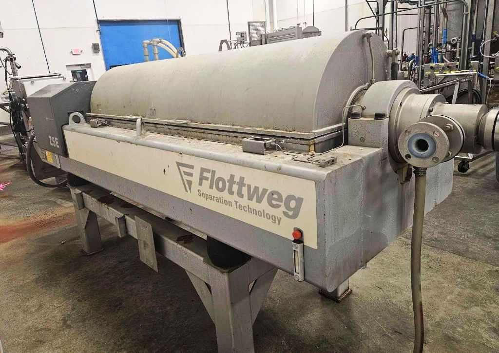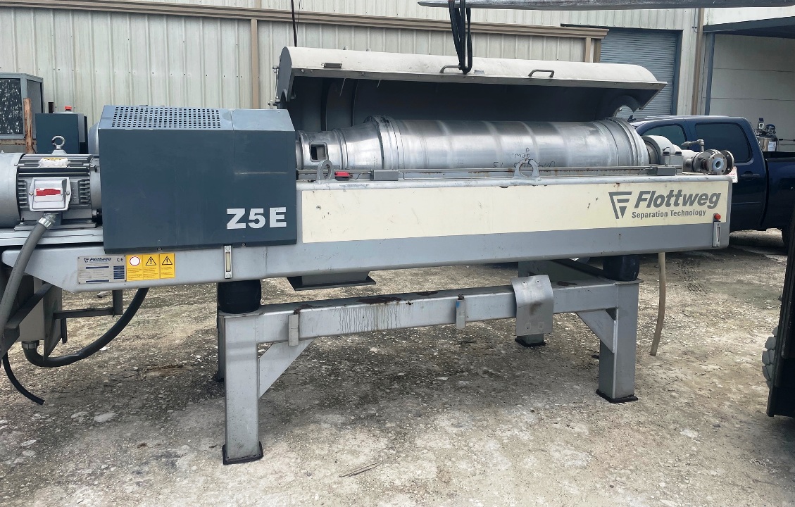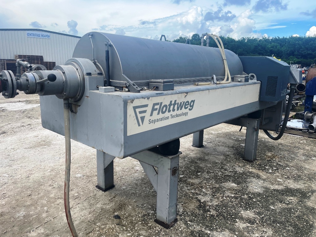 Max bowl speed 3500 RPM, 3650 x G, 21" x 84" bowl ID. 15 degree beach angle, on-the-fly adjustable pool depth arm, liquid discharged under pressure, 7" single lead hardsurfaced conveyor, 75 HP motor 460/3/60/1780 RPM, 20 HP backdrive, SIMP-Drive dual VFD and planetary gearbox, polymer feed tube, guards, vibration switch/isolators, chutes and stand. No control panels. 2009 vintage. Excellent condition.