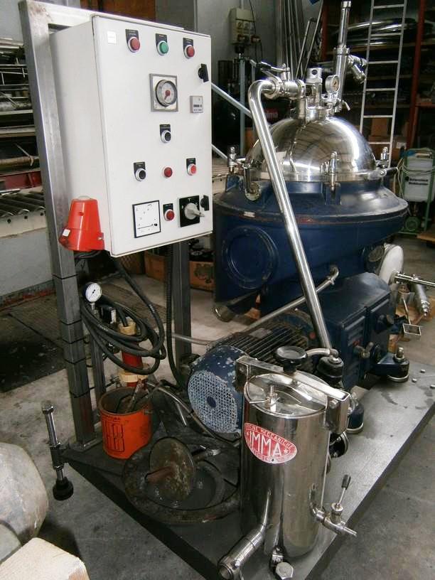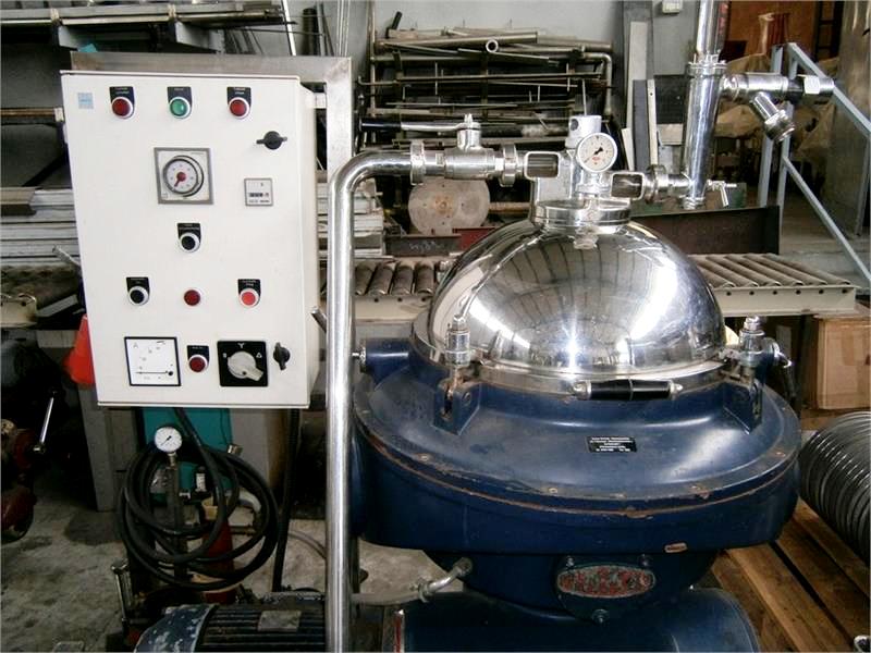 Max bowl speed 4500 RPM, rated @ 30,000 LPH, 11 KW motor 380/3/50/1450 RPM, water harness, pre-filter, tools and control panel, unitized on a portable cart. 1977 vintage. Very good condition. Located in Europe.