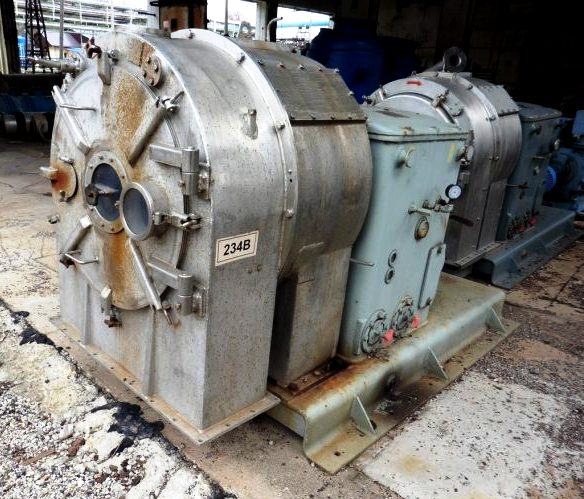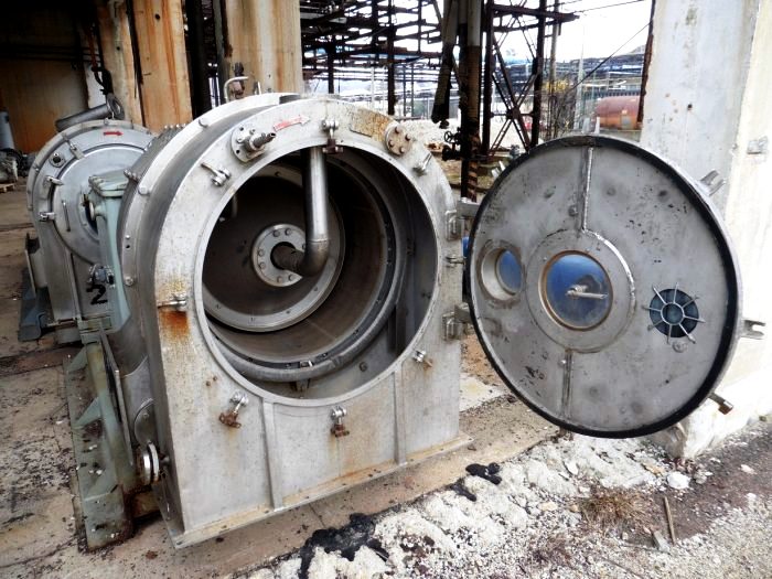 Single stage, max bowl speed 1100 RPM, .012" slot gap. Motors missing. Very good condition. Located in Europe.