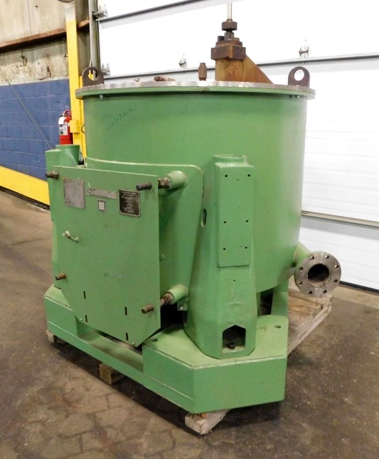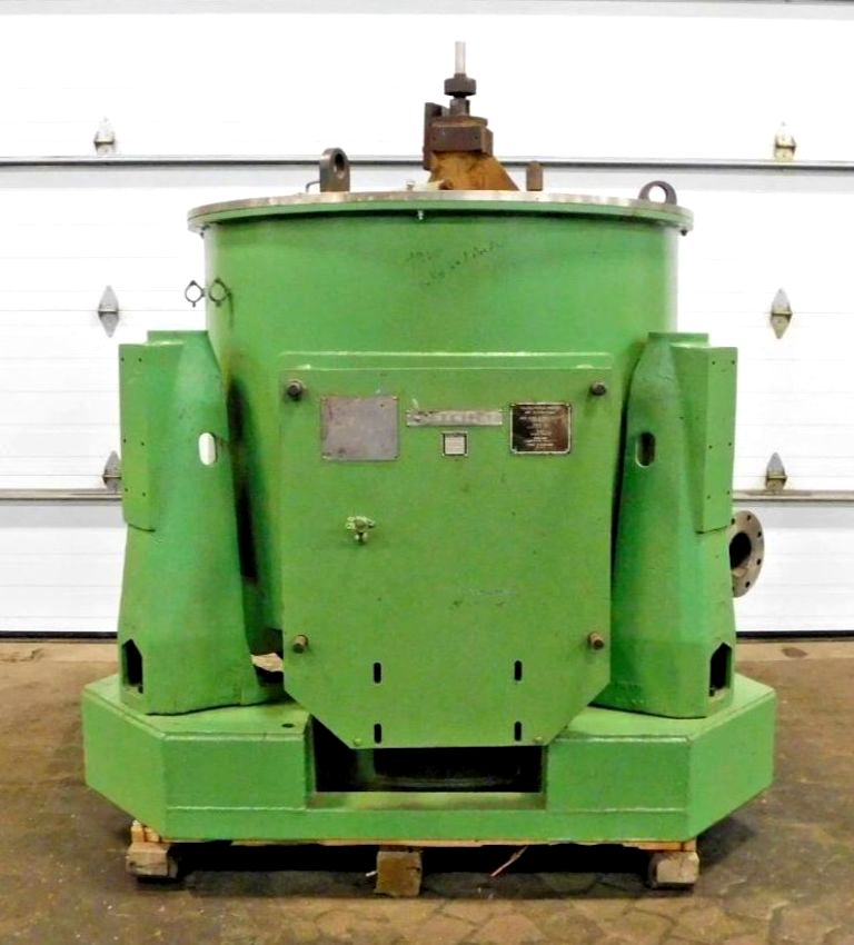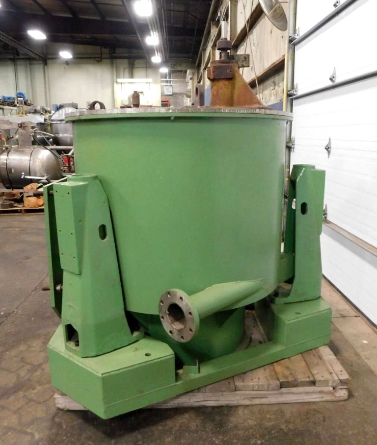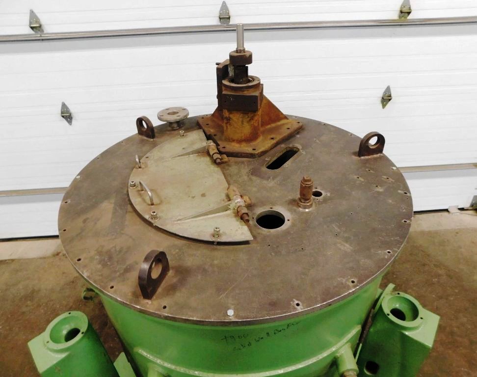 Max bowl speed 1250 RPM, 900 x G, 40 x 24" bowl ID. Pneumatic single motion plow assembly, pneumatic skimmer assembly, 3-way skimmer valve, vibration switch, feed pipe, rinse pipe, sight glass, siphon tube. 1975 vintage. Very good condition. ***NO MOTOR***