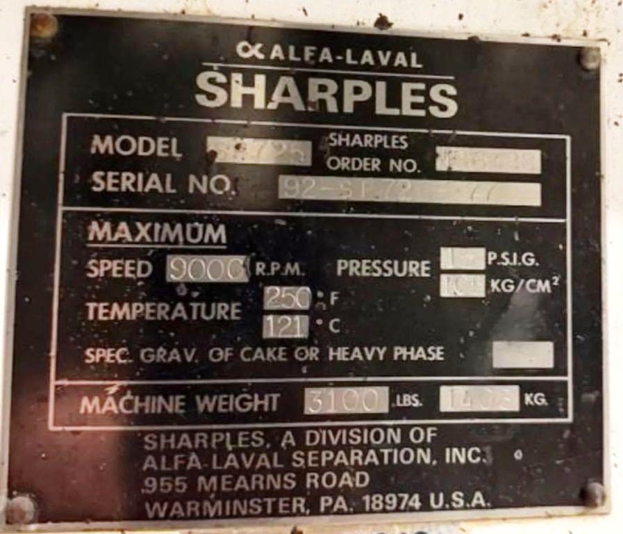 With its 1992 vintage, the Sharples SP-725 Super helix clarifier centrifuge, 316/317SS. has been maintained in excellent condition, making it a reliable addition to any industrial operation. Its combination of high-speed performance, durable construction, and easy maintenance makes it a valuable asset for companies looking to enhance their separation processes. Investing in this centrifuge not only improves operational efficiency but also ensures that your facility adheres to the highest standards of safety and quality.