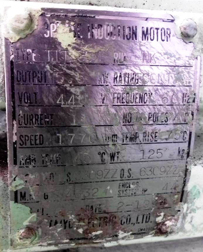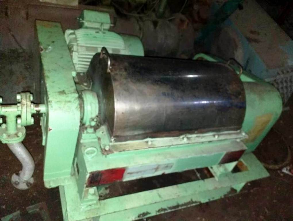 Max bowl speed 4000 RPM, 360 degree cake ports, grooved beach, 4.25 single lead hardsurfaced conveyor, 22 KW motor 440/3/60/1770 RPM, 165:1 gearbox, 5.5 KW backdrive, feed tube, guards and vibration isolators/switch. 1994 vintage. Very good condition. Located in Bangladesh.