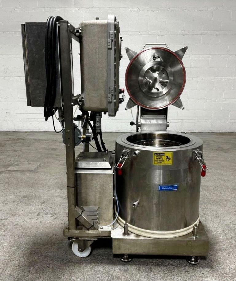 Max bowl speed 3500 RPM, 2500 G's, capacity .36 cu ft. Flip top cover, sight glass, feed tube, hydraulic drive 3 HP XP motor 220/440/3/60/1800 RPM, XP control panel, unitized on portable skid with digital tachometer. High pressure design STM-1000-146 with mechanical seal, air purge system and safety interlock. Steam sterilizable. 1997 vintage. Excellent condition.