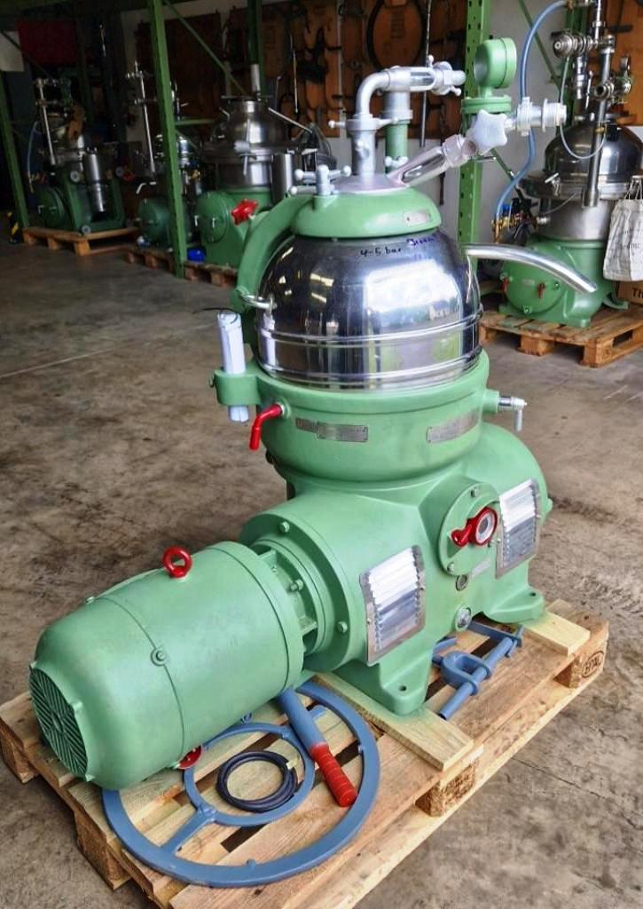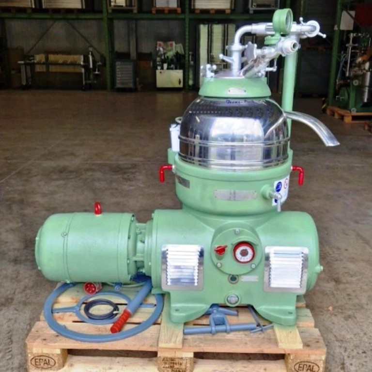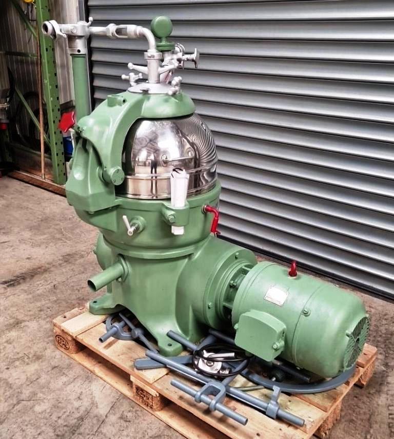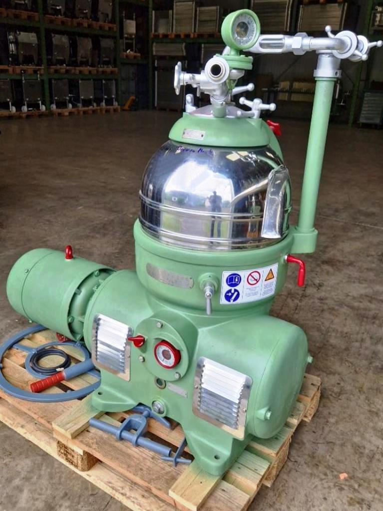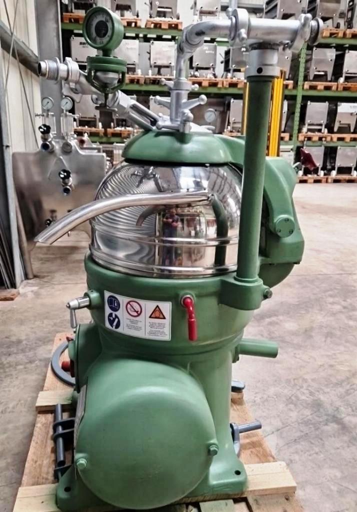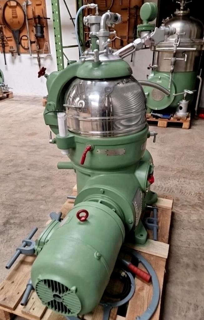 Max bowl speed 6500 RPM, rated @ 3000 LPH on wine mist, 2 chambers. 7.5 KW motor 380/3/50/1450 RPM, flow meter, base frame, tools, starter panel and manual. Reconditioned to "as new." Located in Europe.