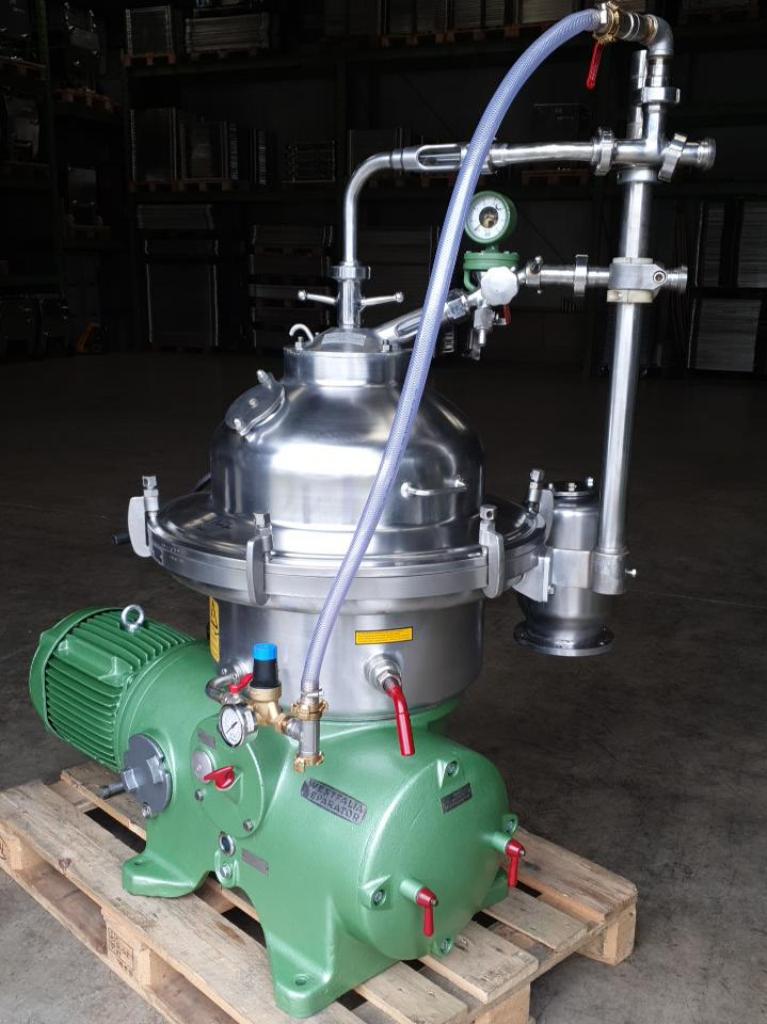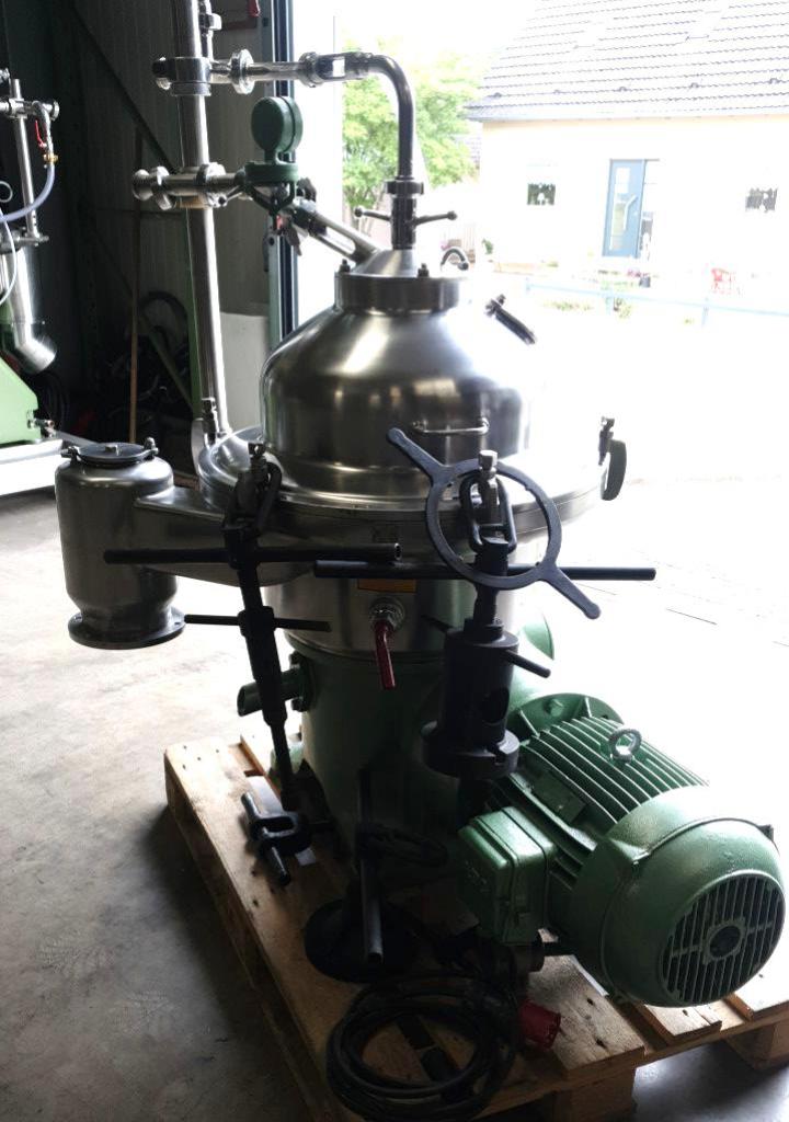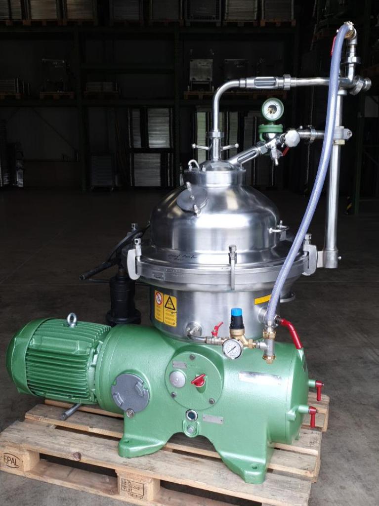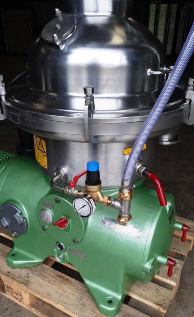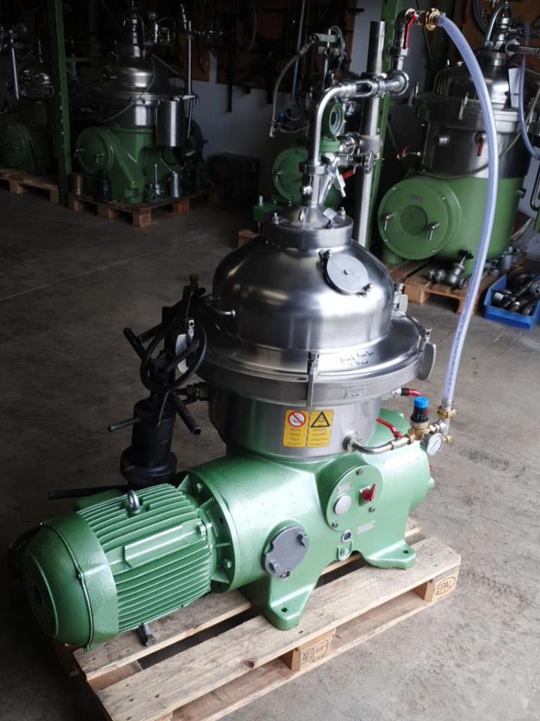 Max bowl speed 6500 RPM, rated @ 10,000 LPH, 11 KW motor 380/3/50/1450 RPM, sludge cyclone, base frame, tools and manuals. Reconditioned to "as new." Located in Europe.